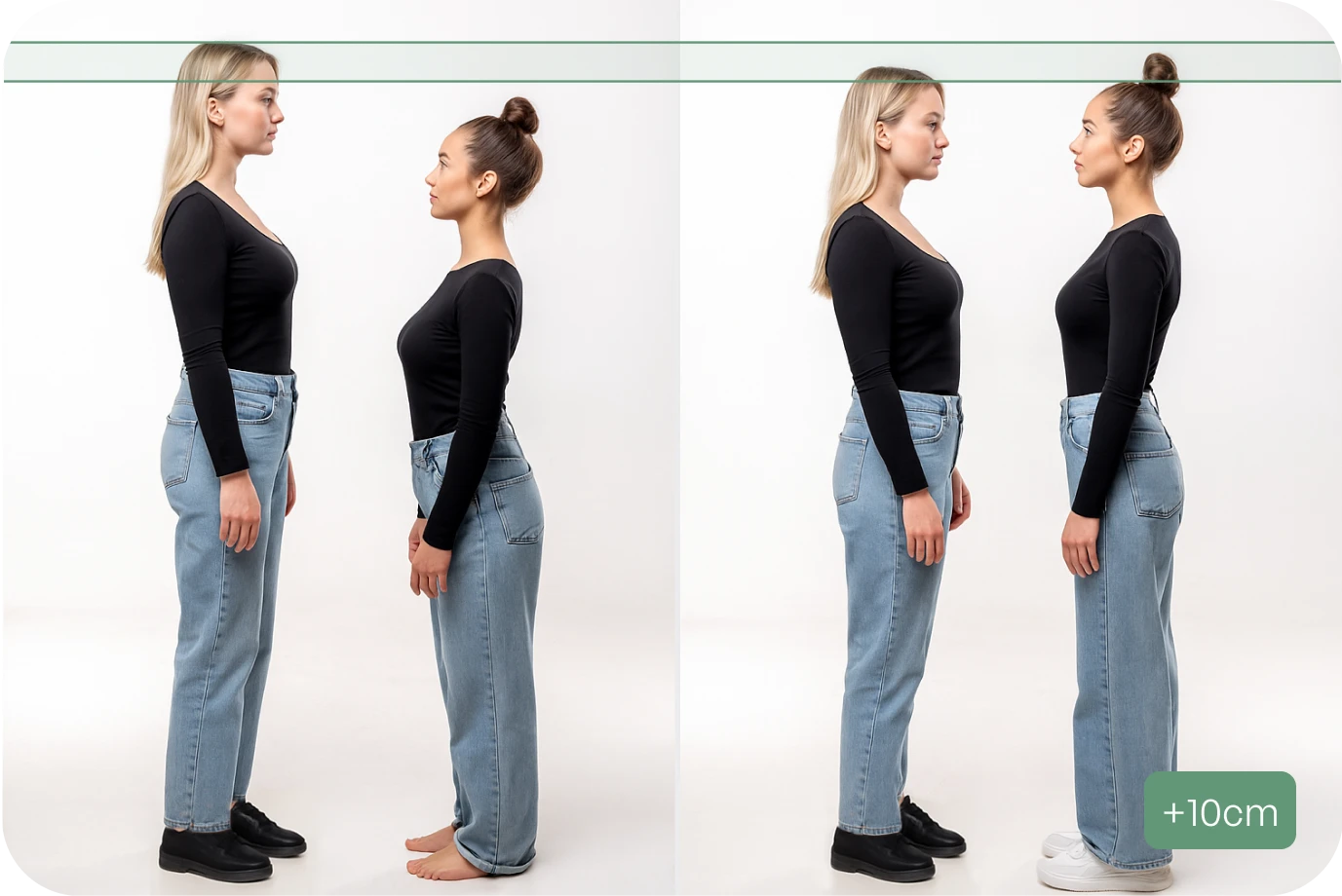 Was wären 10 cm mehr für dein Selbstbewusstsein Mehr Präsenz. Mehr Haltung. Mehr du selbst. Unsere unsichtbare Erhöhung verändert nicht nur deine Größe, sondern auch, wie du dich fühlst – und wie andere dich wahrnehmen. Stärke, die man sieht – Selbstsicherheit, die du spürst.